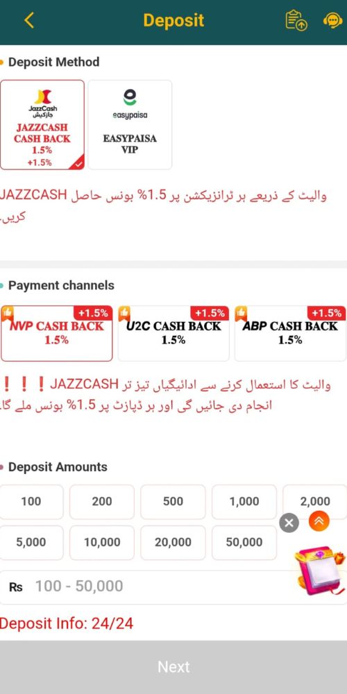 The platform supports popular local payment methods such as JazzCash and EasyPaisa that allow users to deposit and withdraw funds without confusion. This makes transactions easier and more secure for Pakistani users.